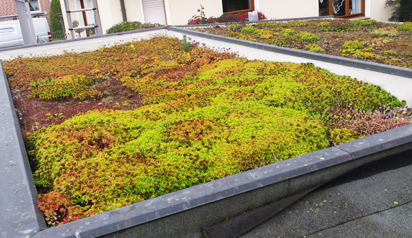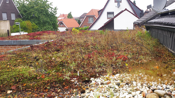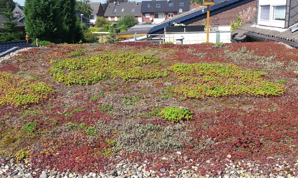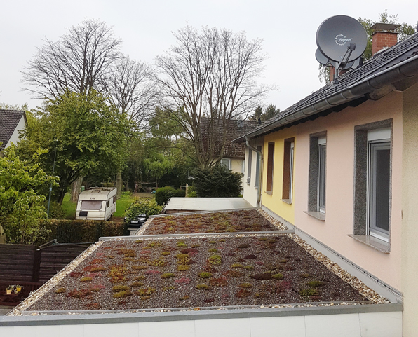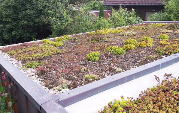 Die Vorteile der Dachbegrünung sind vielfältig. Das ökologische Gleichgewicht wird durch Dachbegrünungen und Fassadengärten verbessert, da diese Sauerstoff abgeben, CO2 aufnehmen und effizient die Biodiversität steigern. Darüber hinaus nimmt die Dachbegrünung Regenwasser auf, welches nicht mehr durch Kläranlagen gefiltert werden muss. Die Dachbegrünung schafft Lebensraum für Pflanzen und Tiere. Durch ihren dicken Schichtenaufbau bietet die Begrünung eine natürliche Isolierung gegen Frost und Hitze sowie Schutz vor UV Strahlen und Hageleinschlag. So verlängert sich die Lebensdauer eines Flachdachs durch die Begrünung um ein vielfaches. Ein weiterer Vorteil liegt im Schallschutz da die Dachbegrünung den Schall zwischen 3dB – 8dB dämpft.